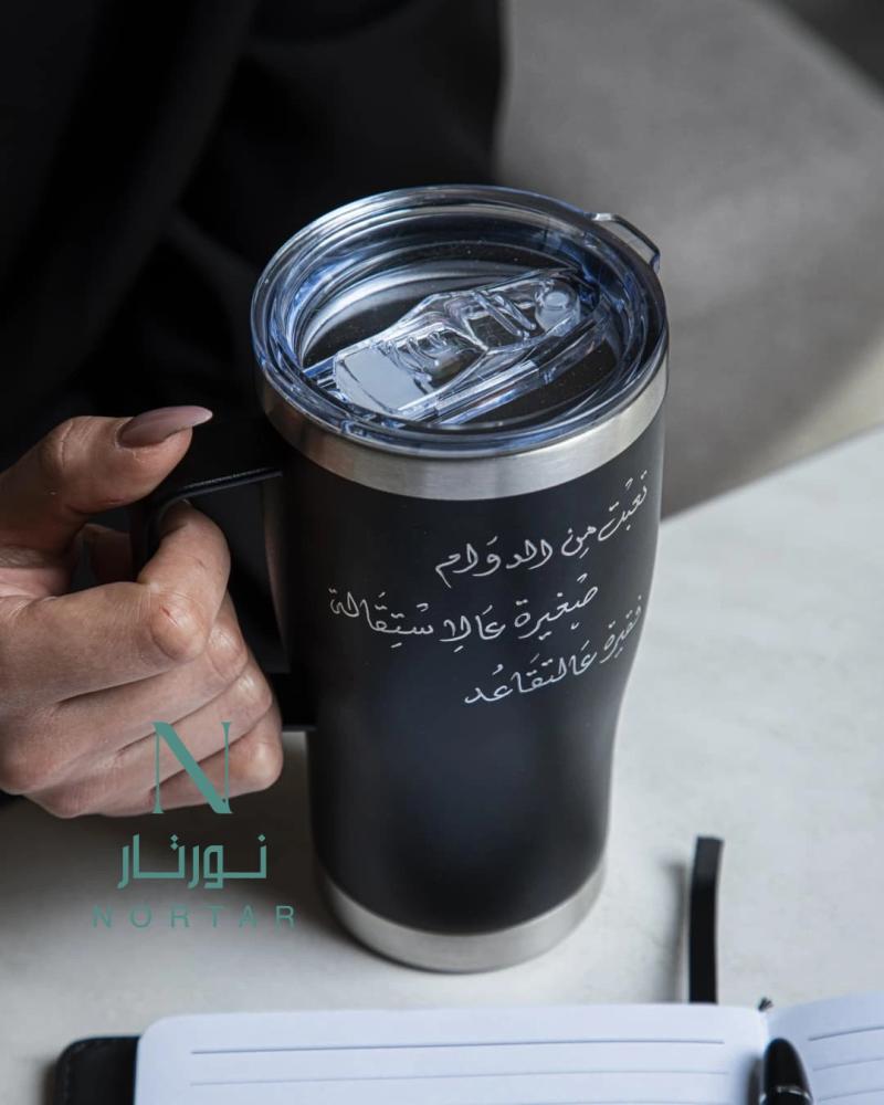 كوب حراري أنيق محفور بالاسم أو العبارة حسب طلبك